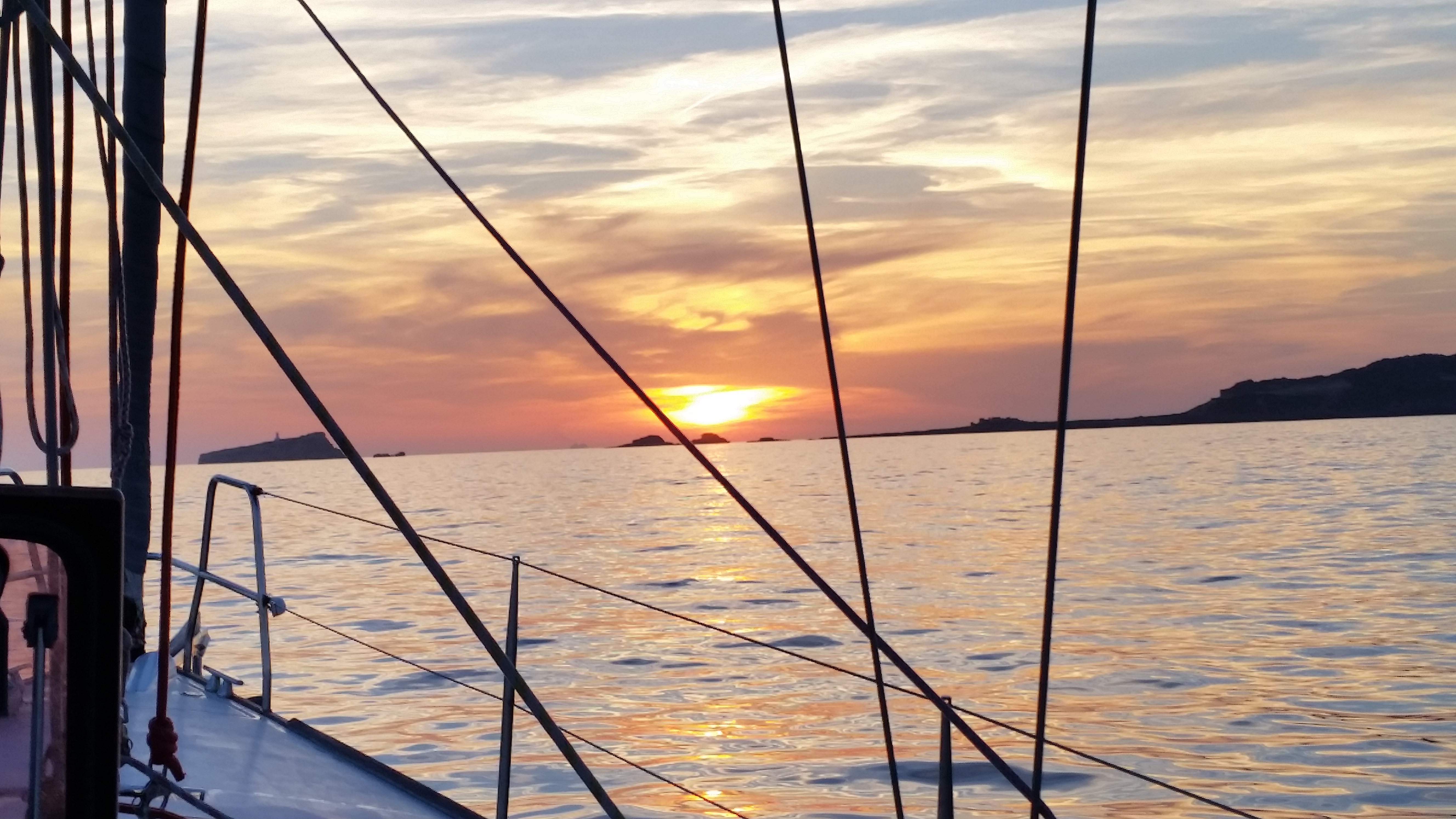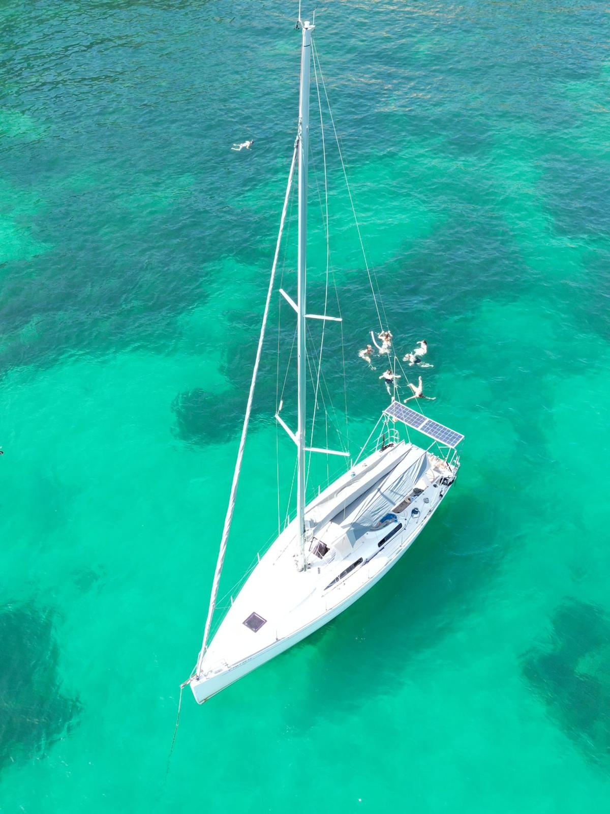 Zarpamos a las 16:30 para disfrutar de 6 horas de auténtica navegación a vela, dejando que el viento marque el ritmo mientras el sol comienza su descenso. Durante la travesía fondearemos en aguas cristalinas de color turquesa y arena blanca, donde podrás relajarte y disfrutar de un baño inolvidable, con material de snorkeling incluido y tablas de paddle surf para explorar el entorno a tu ritmo.